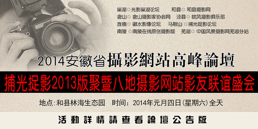 | 2014安徽省六地市摄影网站高峰论坛 ——巢湖、和县、含山、泾县、马鞍山、南陵六地市摄影网站版聚暨影友联谊盛会